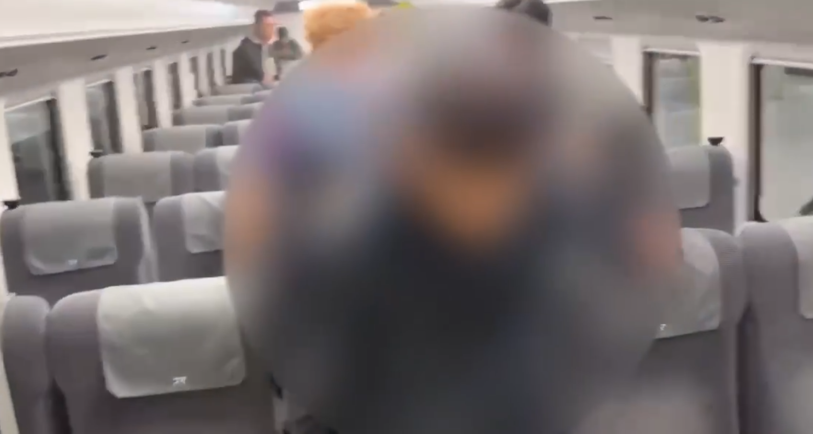 自強號車廂內噴滅火器男子遭旅客壓制,鐵路警察上車將其逮捕。翻攝畫面