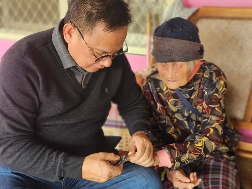 鄉長返家探視母親,貼心協助處理生活瑣事,陪伴長者度過溫馨時光。