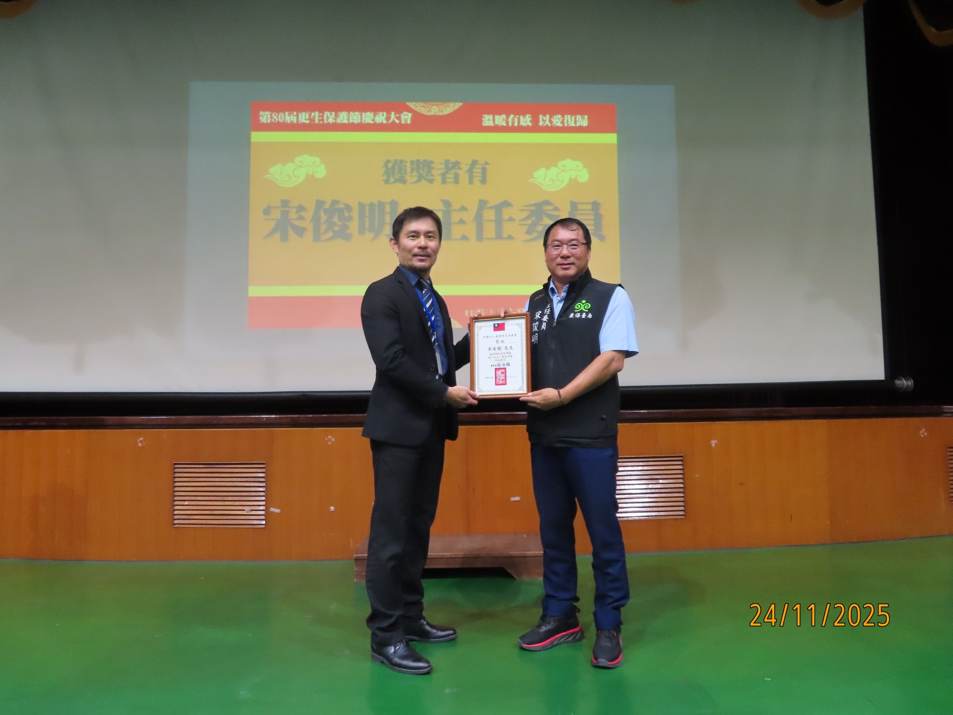此次受表揚的輔導員,多數長年深入社區與家庭安撫關注,陪伴更生人走過最困難的重建階段。十多年如一日協助更生人找尋工作、戒除毒癮,當更生者面臨家庭破碎、生活陷入谷底時伸出援手,讓個案重新找回前進的力量,他們低調奉獻無私、不求名利回報,是社會安全網中不可或缺的第一線穩定力量,大會活動中主任委員宋俊明致詞指出:更生保護80年來,一路走來並不容易,但正是因為一群有愛心、有耐心、願意付出的輔導老師,讓被社會忽略的人能重新看見希望,每一次成功的個案更生背後,都是輔導員的努力與社會的包容,更重要的是家人的不離不棄。