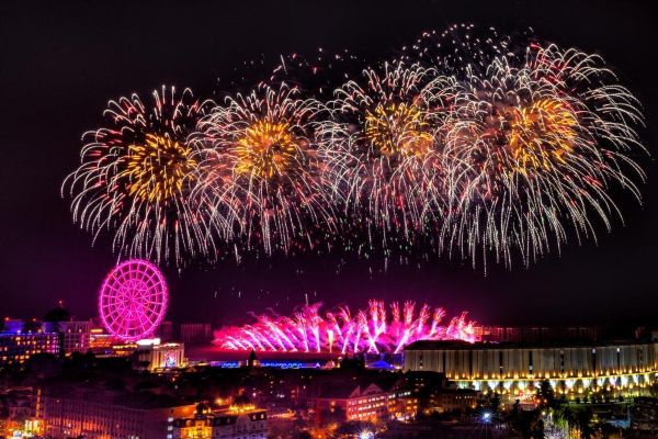 義大世界跨年煙火的施放地點與往年一樣,於購物廣場後方的大草皮施放煙火,這裡地形遼闊,煙火展現上相當震撼,今年更增加高空煙火的部分,滿足全區觀眾的視野,主打從頭到尾毫無冷場,今年結尾還會施放金星錦冠,低空的單排錦冠瀑布煙火如蜂鳴火陣,搭配高空黃金瀑布煙火如金絲萬縷,在星冠與蜂鳴交織中,與您狂歡跨年夜!