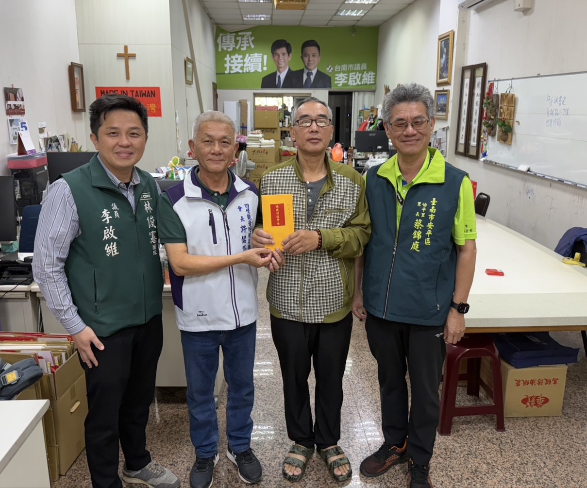 台南市議員李啟維今(12/7)媒合四臂觀音明鏡功德會,在服務處捐贈民生物資和善款給弱勢族群,為寒冬帶來一股暖流,現場氣氛溫馨感人。李啟維議員亦感謝四臂觀音明鏡功德會與所有善心人士,在歲末時節為社會注入暖意,讓弱勢家庭感受到實質支持與關懷。
