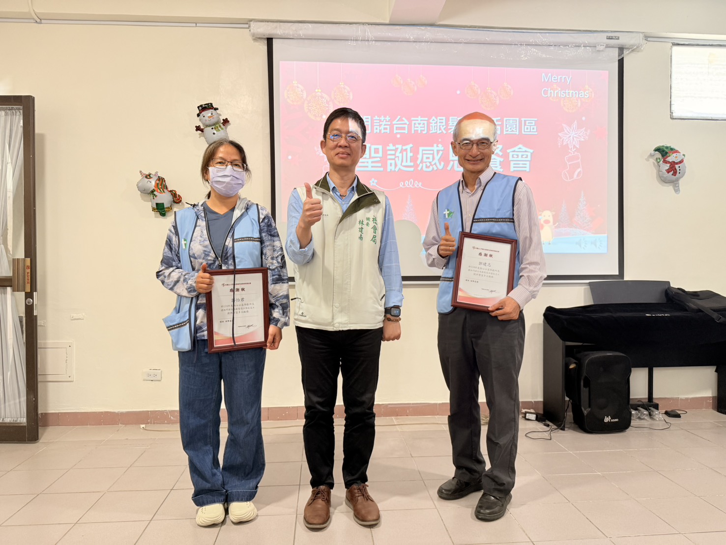 臺南市政府持續推動高齡友善政策,社會局委託門諾社會福利慈善事業基金會經營「銀髮悠活園區」,昨(24)日園區特別舉辦「2025聖誕節感恩餐會」,由社會局機要秘書林建南代表局長郭乃文出席,並感謝園區夥伴長期以來的努力與付出。園區邀請長者、志工及同仁齊聚一堂,共同歡慶溫馨耶誕佳節,並於活動中頒發感謝狀,表揚長期協助園區環境維護及熱心投入公益捐獻的長者與志工,肯定他們無私付出與溫暖行動,園區期盼透過感恩餐會獻上祝福,讓每一位長者都能感受到被尊重、被關懷的溫暖心意。
