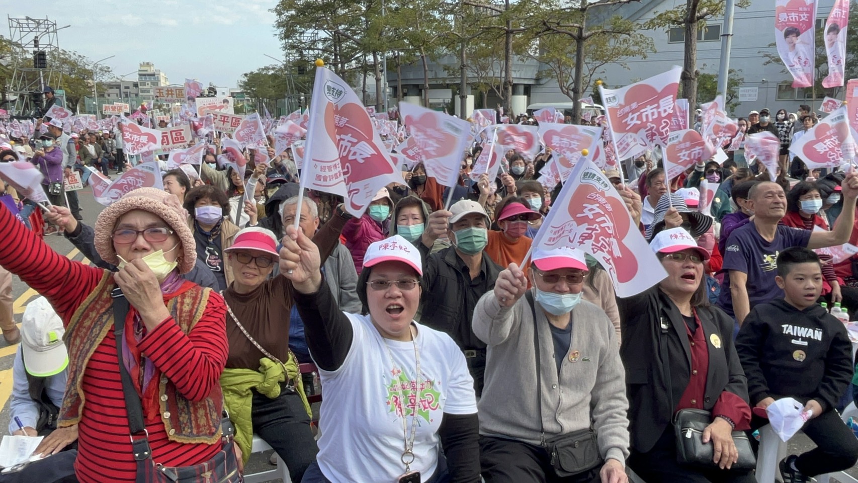 ▲現場三萬多名支持陳亭妃的民眾,相當熱情的吶喊與搖陳亭妃戰旗。(記者黃雋淮 攝)