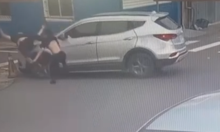 屏東縣枋山鄉機車騎士及乘客被休旅車撞飛。翻攝畫面