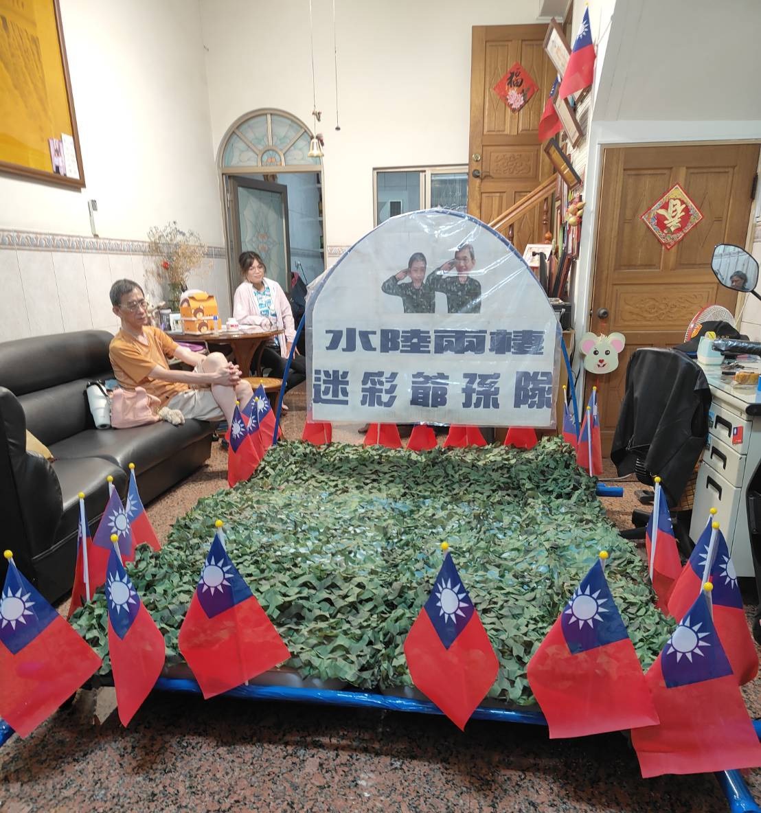 圖3:吳爺爺與孫子組隊以迷彩戰術再次挑戰造筏競賽。